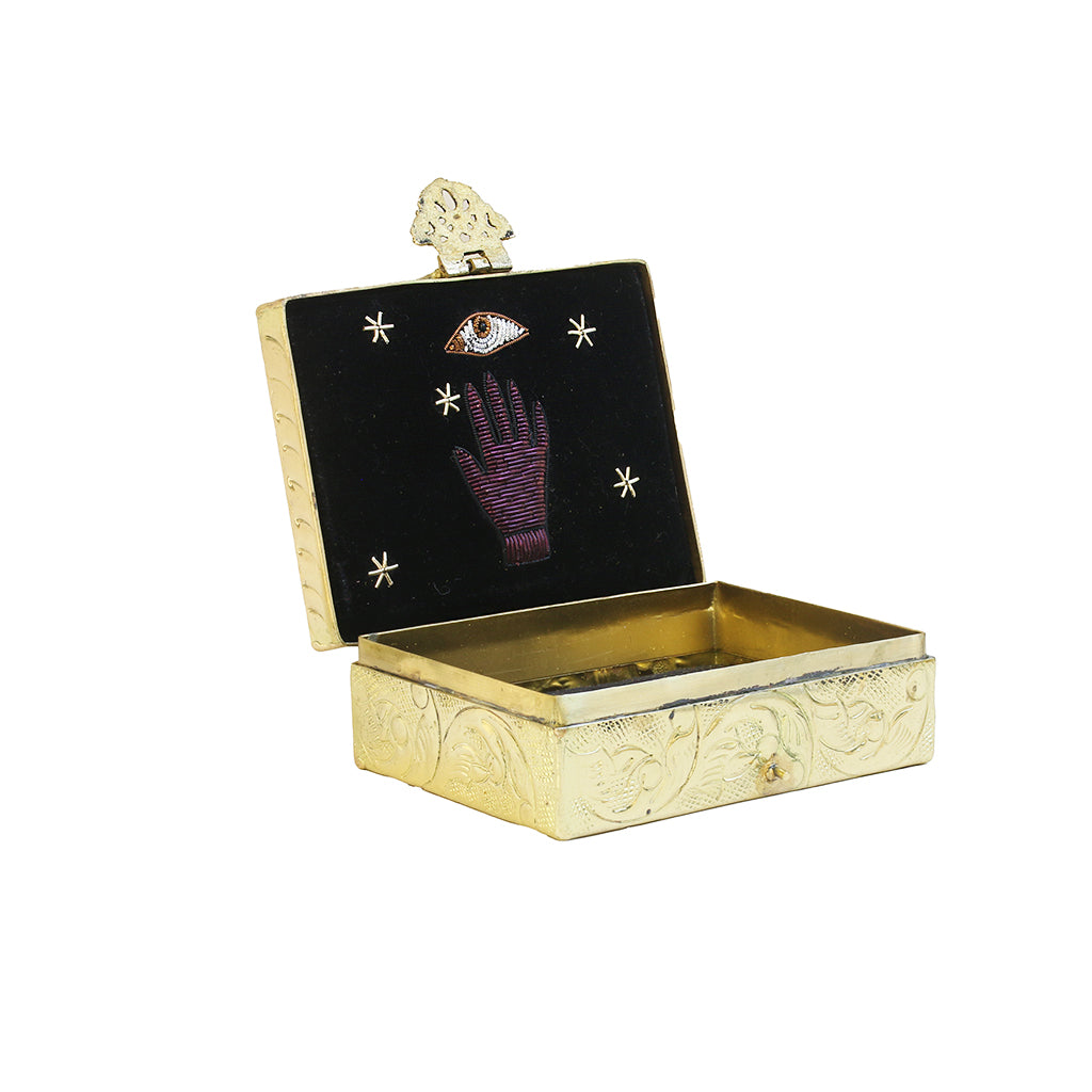 Cette boîte en laiton finement ciselée allie délicatesse et caractère, comme tout droit sorti d’un conte.